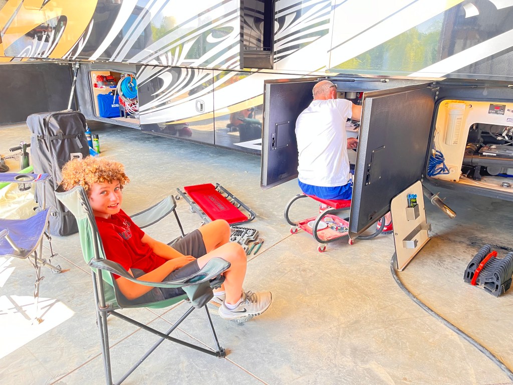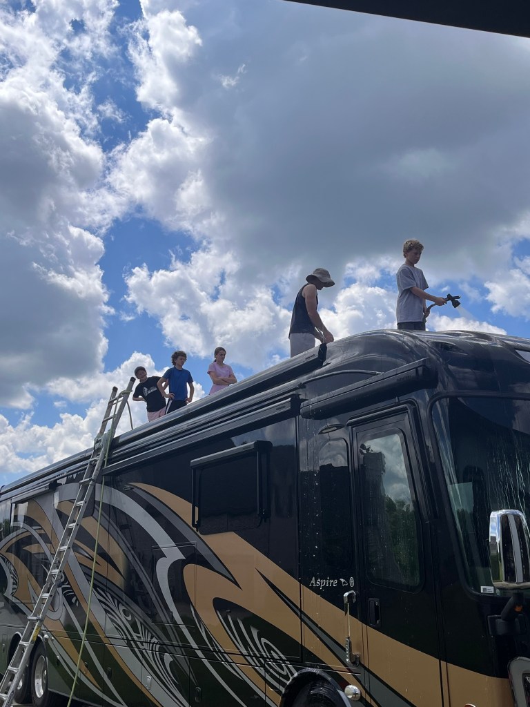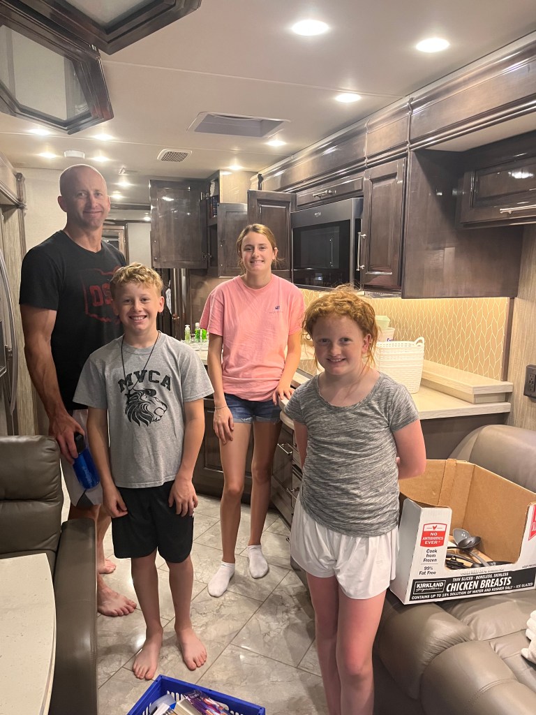 After 10 months of planning, we FINALLY started to move items needed for the trip out west from our house to our bus. This couldn’t have come at a crazier time. The month of May is so busy with end of school activities with our four kids and all that comes with teaching Kindergarten. Having an organized list to accomplish tasks daily helped. We spent the whole weekend “stuffing the bus” and washing it.