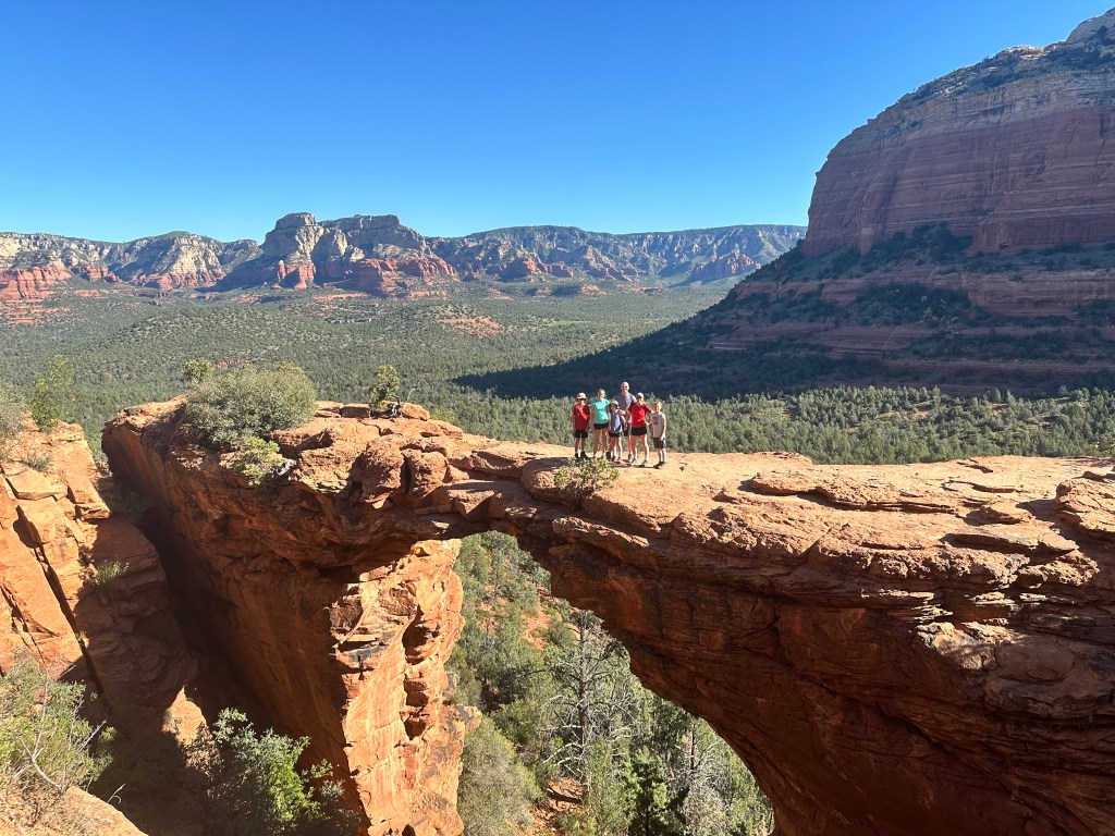I lost sleep prior to completing the hike above. I was so afraid that I would miss an amazing photo opportunity with our family. I am the only one in our family of six who doesn’t prefer heights. Surprisingly, this was actually one of the easier hikes I completed. The arch looks very narrow, but it’s actually really wide. I didn’t want to let go of Eric’s hand, but I was surprised that it was wide. We arrived around 8 am that day and thankfully we went early. As we were leaving, the line to go on the arch bridge was almost 30 minutes long. We heard the day before it was close to 90 minutes. If you complete this hike, make sure you get there very early. A little thought….don’t ask to take someone’s picture or you may be stuck there for a while being a photographer for everyone. I believe I had 4 different phones at one point of strangers.