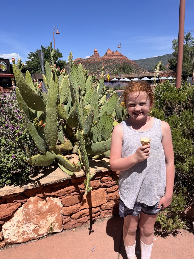 We had ice cream at a sweet place in downtown Sedona called Black Cow Cafe. It was tasty and perfect for sweaty kids! It seems like our car always leads us to ice cream places. Homemade waffle cones and ice cream hit the spot.