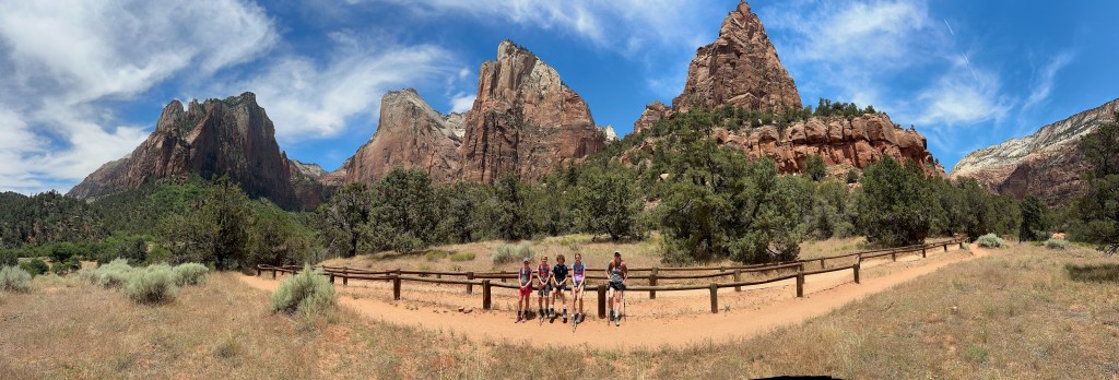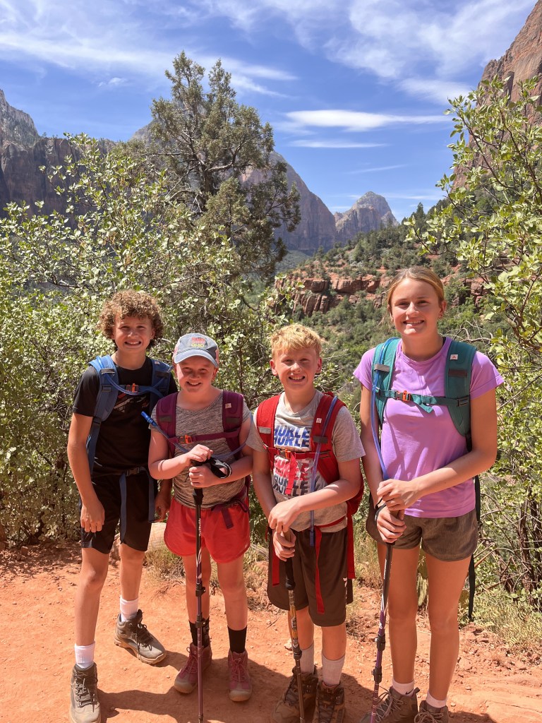 This hike was incredible. God’s creation is just amazing and every couple turns on the trail we were constantly stopping for great views and pictures. Yes, I was that mom asking the family to stand together numerous times. These pictures don’t do this place justice. Some of these views don’t even look real in person. The Zion valley is breathtaking along with the Virgin River that runs through it.
