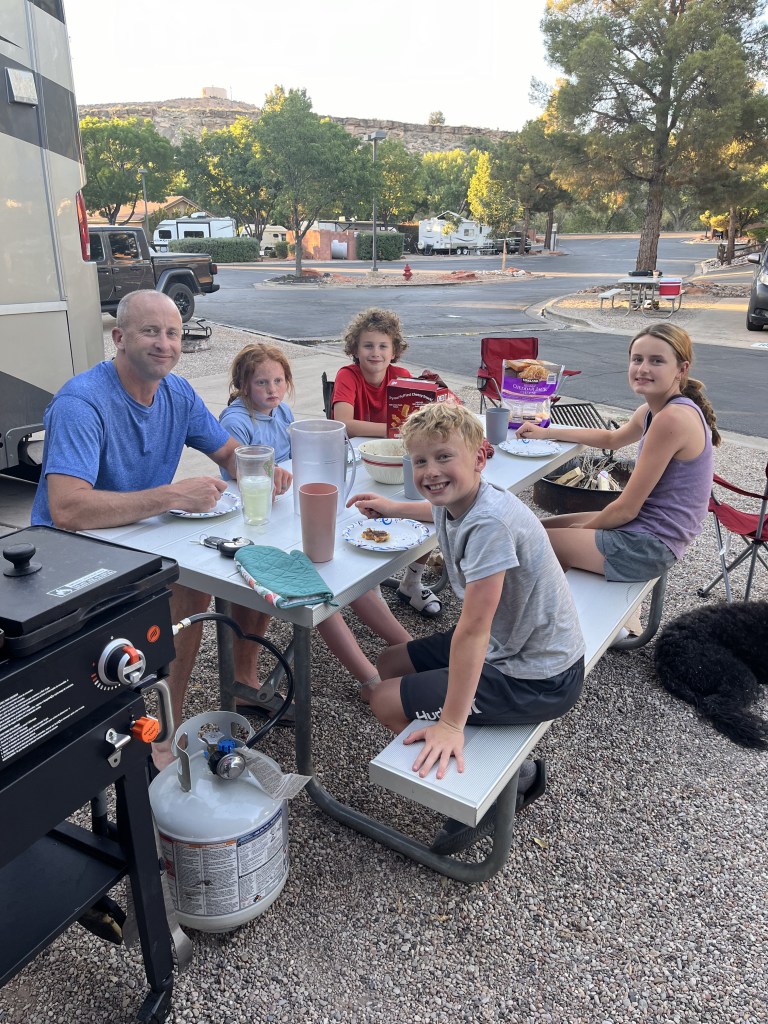 Back to our homestead for dinner on the Blackstone. Do you agree that campfire food/grilling tastes so much better? Cam LOVES to cook each evening with Eric.
