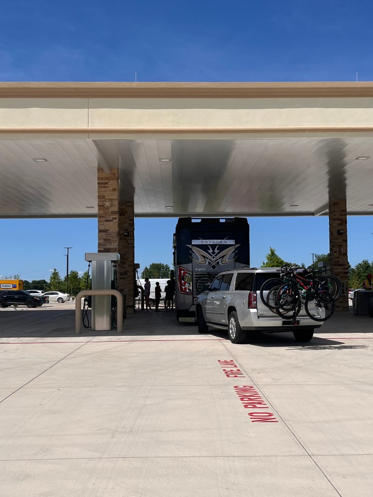We had a great drive to Oklahoma City, Oklahoma. It was about 9 hours in the RV. We made our first stop to get diesel and DEF and to walk around a bit. We stopped at our favorite gas station…Bucees! We have a tally of how many we see on the road. So far, we’ve seen two and one being built.